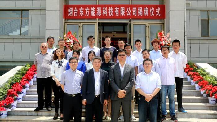5月28日上午,烟台东方能源科技有限公司在高新区青岛水务积水科技有限公司智能科技园内举行了简洁而隆重的公司揭牌仪式,东方能源正式扬帆起航。东方能源董事长、部分董事、全体创始员工和部分员工家属,以及驻园各部门主要领导应邀出席了本次揭牌仪式。